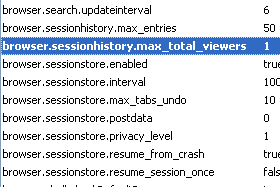 Ta nastavitev določa, koliko strani ima Firefox shranjenih v spominu v načinu, ki ne zahteva ponovnega prebiranja strani. Vedeti je treba, da ta nastavitev ni isto kot običajno pomnenje strani v medpomnilnik. Privzeta vrednost je -1, kar pomeni, da je število strani v pomnilniku prilagojeno glede na obstoječo količino pomnilnika. Z miškinim dvoklikom na to polje lahko vrednost spremenimo. Sam predlagam vrednost 0 ali 1. |