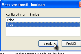config.trim_on_minimize in potrdimo s klikom na V redu. |