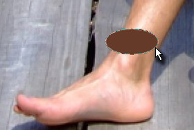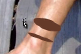 Narišite elipso pri nogi ali roki (glej sliko).