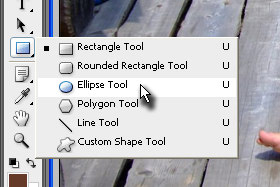Držite z miško na orodju Rectangle Tool (bližnjica je tipka U), da se prikažejo ostala orodja. |