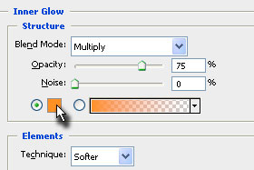 ![]() Kliknite na zadnji kvadratek (glej sliko) in določite oranžno barvo. |