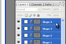 ![]() Pritisnite tipki CTRL + E, da vse Shape layerje združite. |