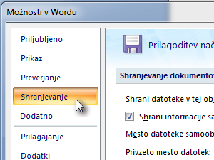 ![]() Na levi strani izberite opcijo Shranjevanje. |