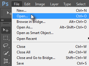 ![]() Odprite Photoshop. Potem pa v programu kliknite na File in izberite Open... |