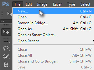 ![]() Potem pa se vrnite nazaj v Photoshop, kliknite na File in izberite New... |