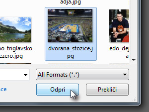 ![]() Odpre se vam okno z raziskovalcem, kjer označite poljubno mapo in slikovno datoteko, ki jo želite odpreti. |