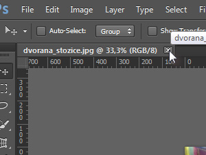 ![]() V Photoshopu jo boste videli kot zavihek zgoraj. To velja za novejše različice programa Photoshop, če imate starejšo različico, zavihkov ni, je pa uporaba vseeno več ali manj enaka. Kliknite na mali križec v zavikhu, da zaprete sliko. |