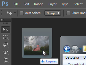 ![]() ... povlecite v Photoshop. Tudi tako se vam bo slika odprla. V primeru, da ste sliko povlekli na že odprto sliko v Photoshopu, pa se vam bo le-ta prilepila kot nova plast.