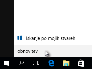 Če ste imeli možnost obnovitve že vklopljeno, potem obnovitev sistema naredite tako, da kliknete gumb Start in v iskalno polje vpišite obnovitev.