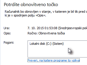 Za razliko od prejšnjih verzij Windows, je v Windows 10 možnost obnovitve sistema v prejšnje stanje privzeto izklopljena.