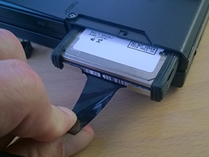 ![]() In nato disk odvil iz kovinskega ohišja. To ohišje je ustvarjeno zato, da se disk lažje vstavi. Nekje teh ohišij sploh ni, torej je menjava še lažja. |