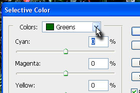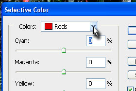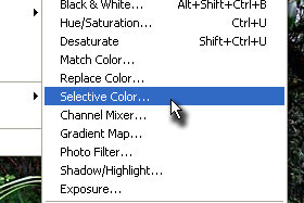 Kliknite zgoraj na Image, Adjustments in izberite Selective Color...