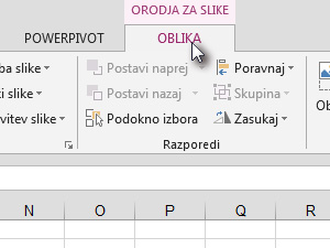 ![]() Zgoraj kliknil na zavihek Oblika. |