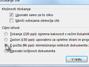 ![]() Ko se mi je pojavilo novo okno, sem pri polju Ciljni izhod označil E-pošta in potrdil s klikom na gumb V redu. |