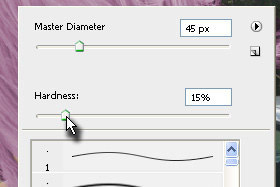Kliknite na fotografijo z desnim miškinim gumbom in določite Harndess na 15% in poljuben Master Diameter (velikost radirke).