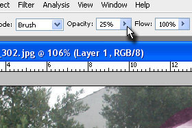 Lahko klikate tudi med lasmi, vendar resnično počasi.... Ne pozabite menjati še velikosti čopiča radirke. Držite tipko ALT in uporabljajte miškin skroler za približevanje in oddadljevanje fotografije. |