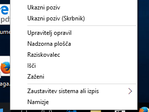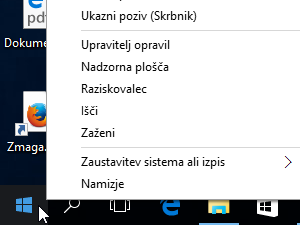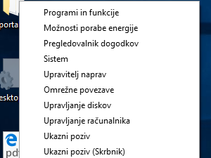 Meni odprete tako, da z desnim miškinim gumbom kliknete na gumb Start.