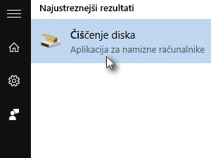 Prikazala se vam bo aplikacija Čiščenje diska, katero tudi kliknete.