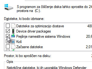 Čiščenje diska po nadgradnji Windows |