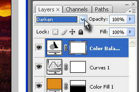 ![]() Novem nastavitvenemu layerju določite senčenje na Color Burn (glej sliko). |