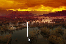 ![]() Sedaj pa z miško potegnite oz zgoraj navzdol, da boste z masko ponovno "pobrisali" krvni efekt zemlje. |