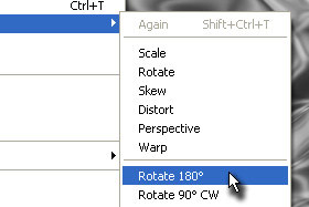 Kliknite zgoraj na Edit, Transform in izberite Rotate 180. |