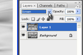 Dupliciranemu layerju določite senčnje na Screen (glej sliko).