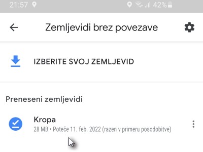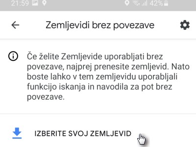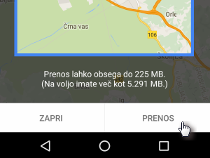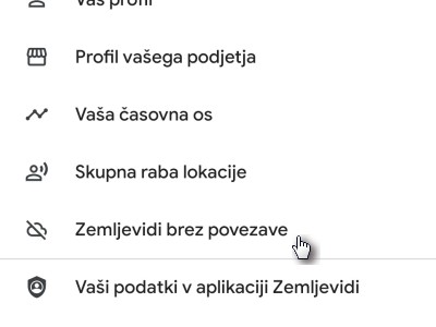 Shranjevanje zemljevida na telefon omogoča, da uporabljamo aplikacijo Google Zemljevid brez internetne povezave.