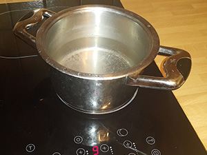 Pripravite lonec z vodo in ga postavite na kuhalno ploščo z nastavljeno najvišjo temperaturo. |