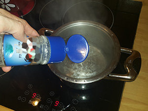 Ko se bo voda segrevala, dodajte nekaj ščepcev soli. |