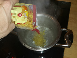 Ko bo voda vrela, dodajte poljubno količino makaronov. |