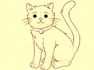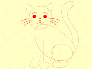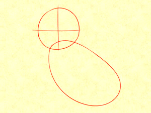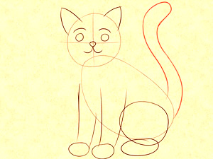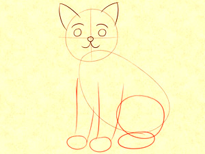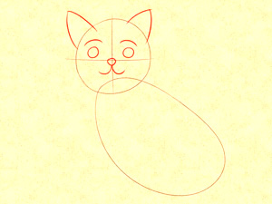 ![]() Najprej narišite elipso, ki predstavlja telo in prekrižan krog, ki predstavlja glavo mačke. |