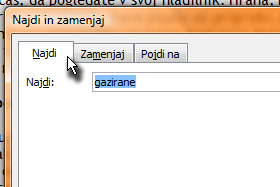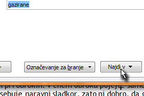 Ko vpišemo iskano besedo s klikom na gumb Najdi v, sprožimo iskanje želene besede v tekstu.