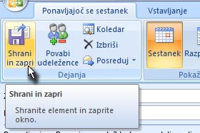 Jaz sem označil Končaj in določil datum, s katerim naj se ponavljanje konča. Kliknite na gumb V redu. |