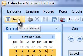 Odprite Microsoft Outlook in Koledar.