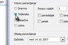 Določite vzorec ponavljanja. Jaz sem določil Tedensko. |