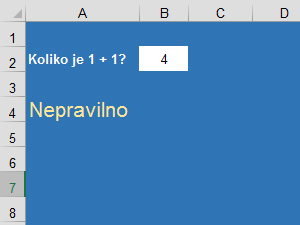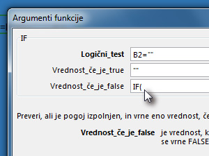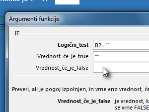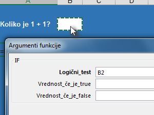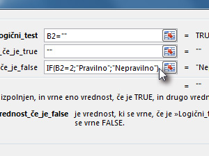 ![]() V oknu IF označite prazno polje Logični test in označite celico, kjer boste vpisovali rešitev. |