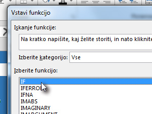 ![]() V novem oknu nastavite Vse kategorije in nato označite funkcijo IF. Kliknite na gumb V redu. |