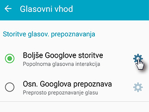 ![]() Pod jeziki bi morali imeti sedaj nastavljena dva jezika. Če želite nastaviti jezik za primarnega, v prejšnjem koraku držite s prstom na izbranem jeziku. Vendar pa prepoznava slovenščine deluje tudi, če ni nastavljena kot primarna. |