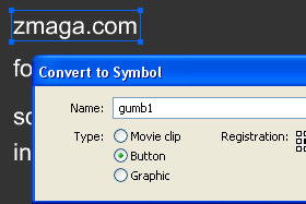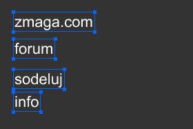 on (release) { getURL ("http://www.zmaga.com/index.php"); } Ponovite postopek še za ostale povezave, seved z različnimi naslovi. |