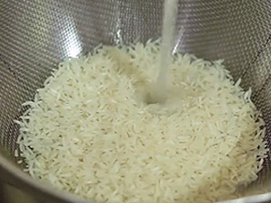 Riž nato postavite v kuhalni lonec z vodo, in premešajte na kuhalni plošči z nastavljeno najvišjo temperaturo.