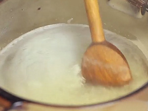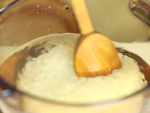 Počakajte, da se voda in riž počasi začneta kuhati in vmes mešajte.