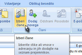 ![]() Če bi radi dodali stik, ki ga nimate shranjenega v Outlooku, kliknite na gumb Dodaj novega. |