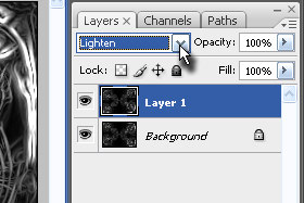 Potem pa ponovno duplicirani sliki določite senčenje na Lighten (glej sliko).