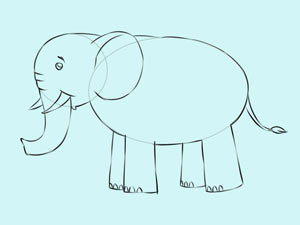 ![]() Dodajte še rep in narišite kremplje oziroma nohte na nogah. Ali imajo slone nohte ali kremplje? ;) |