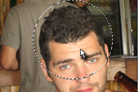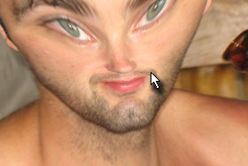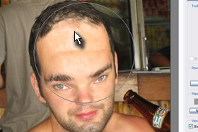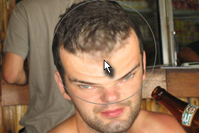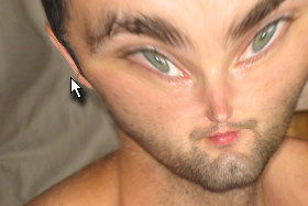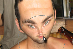 ![]() Klikajte z isto velikim čopičem (Brush Size) na spodnji del glave, da se bo leta pomanjšala. |
