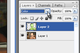 ![]() Dupliciranemu layerju nastavite senčenje še na Color (glej sliko). |