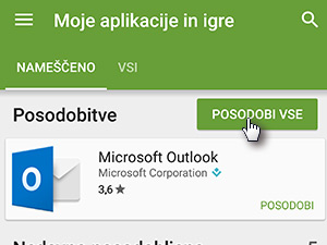 ![]() Prikažejo se vam vse nameščene aplikacije, ki ste jih prenesli iz trgovine Play. Tapnite na gumb Posodobi vse, če se vam pojavi ali pa spodaj na posamezne aplikacije. Dobro je, da ste priklopljeni na Wi-Fi omrežje, da ne boste uporabili zakljubljenih megabajtov v mobilnem omrežju. |
