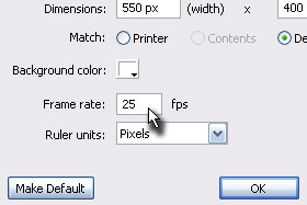 Pritisnite tipko CTRL + J in nastavite Frame rate 25 fps.