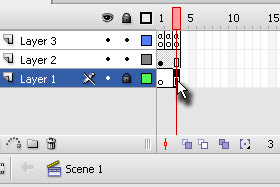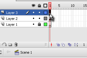 Sedaj pa v Layer-ju 1 označite Frame 3 (glej sliko).